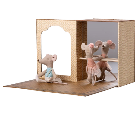 Otwórz drzwi tego magicznego pudełka i odkryj świat tańca, gwiezdnego pyłu i opowieści. Zestaw zawiera papierowe pudełko, które jest jednocześnie studiem tańca i przytulnym domkiem dla myszy, a także dwie myszy ubrane w piękne stroje, gotowe na długie godziny tańca.