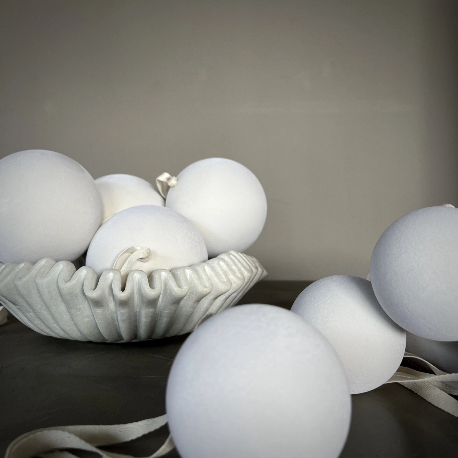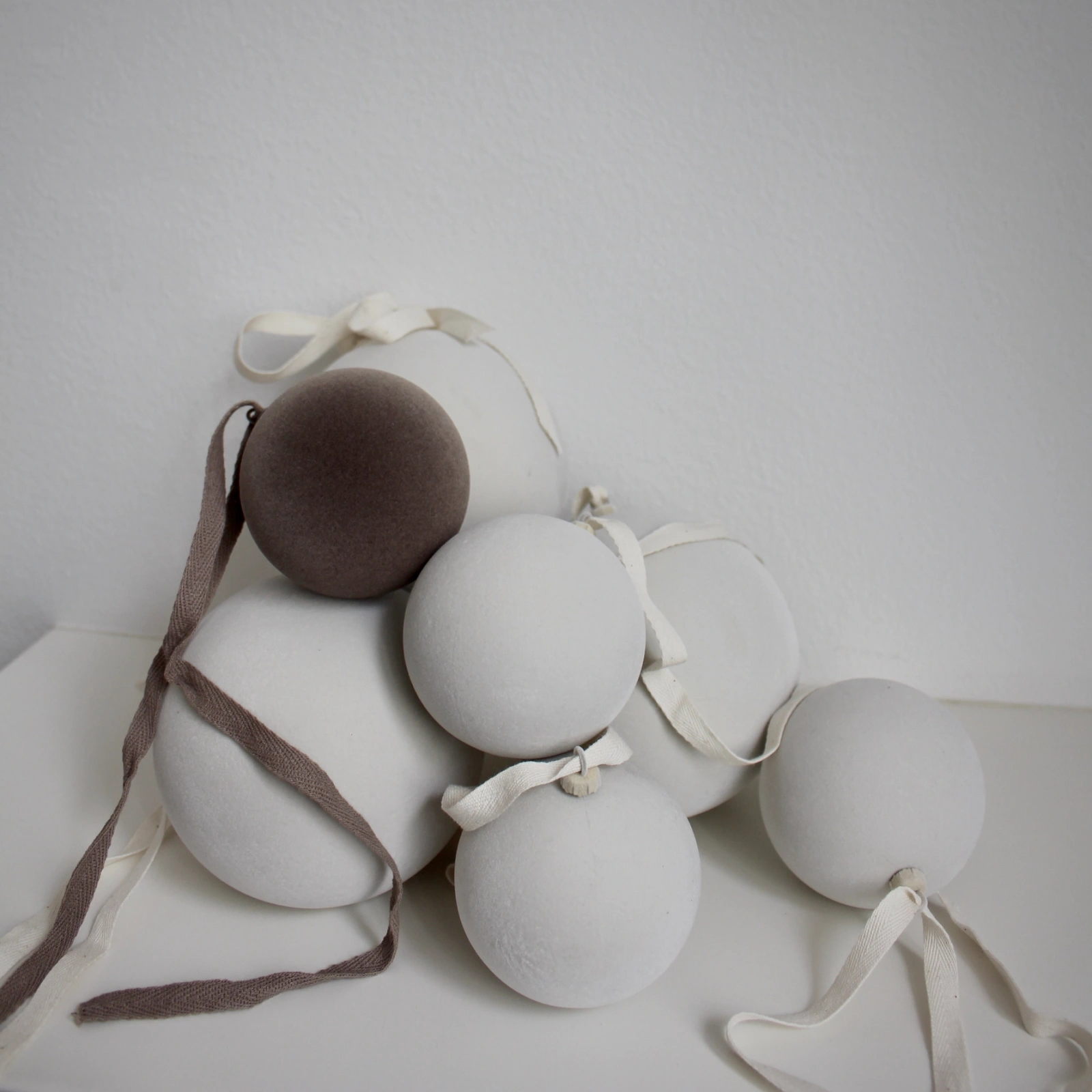 Elegancka bombka świąteczna z miękkiego aksamitu – przymocowana do miękkiego bawełnianego sznurka w tym samym odcieniu.