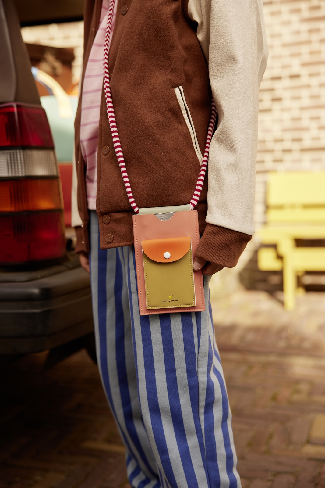 Trzymaj telefon i drobiazgi zawsze pod ręką, a jednocześnie bądź modny. Kieszonka na telefon ma miejsce na trzy karty z tyłu i małą kieszonkę z przodu, zapinaną na magnes.