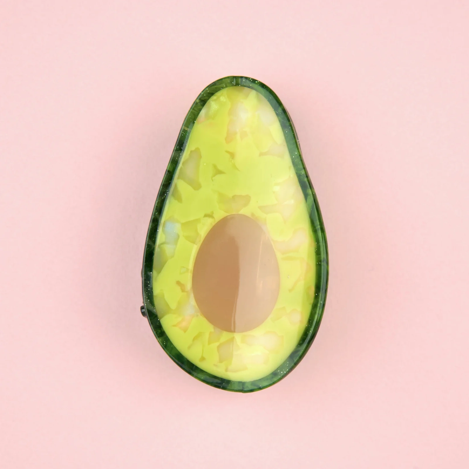Mniam, mniam, oto najwspanialsze awokado! Po raz pierwszy widziane kilka lat temu jako lusterko, teraz powróciło jako radosna spinka do włosów. Ten kolorowy dodatek radośnie towarzyszy nam podczas wszystkich przygód, figlarnie trzymając się rączek naszej torby.