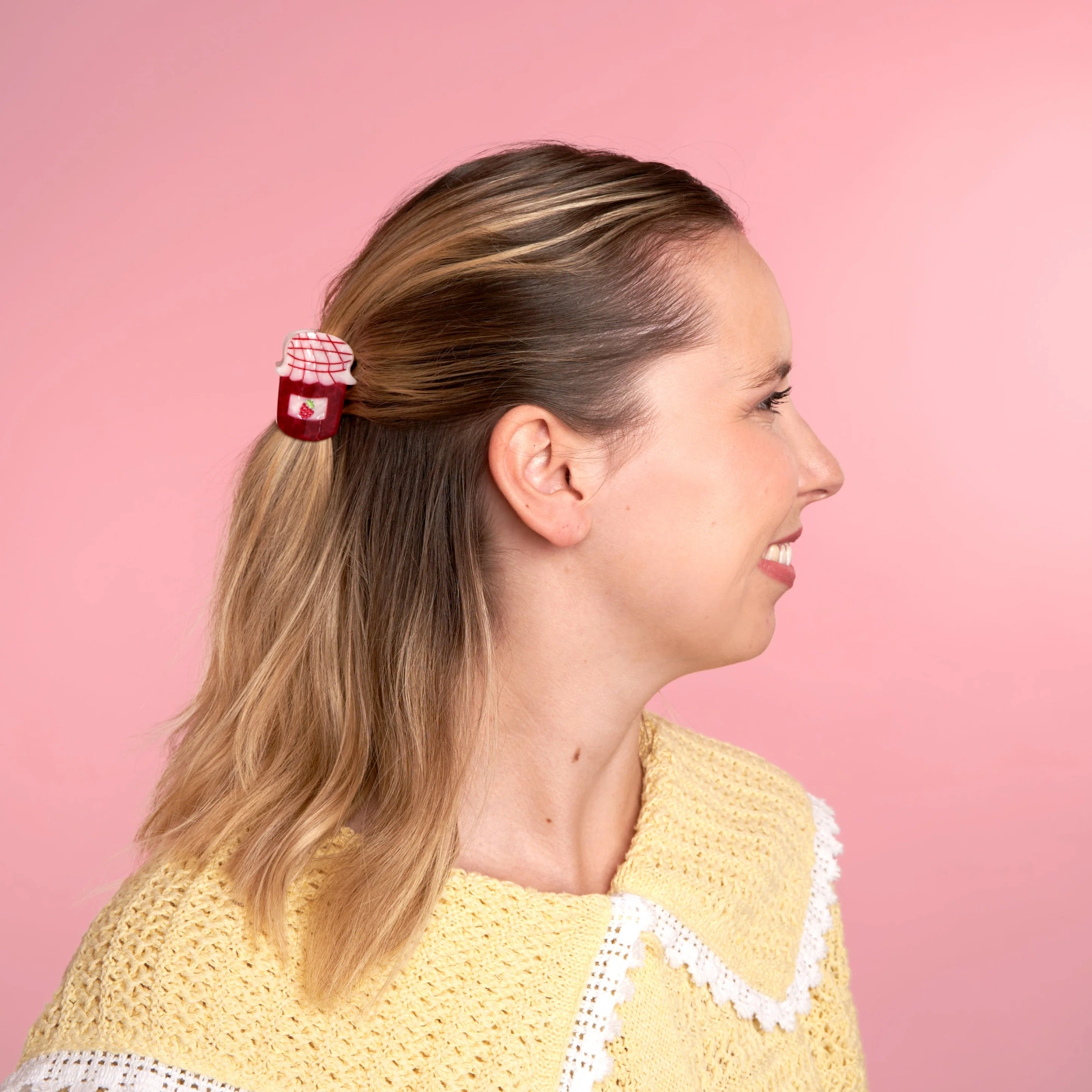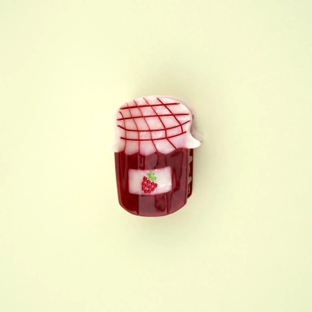 Aby uzyskać nieodparcie urocze fryzury typu half-up, sięgnij po naszą mini spinkę do włosów w kształcie słoika z dżemem! Ta malutka malinowa rozkosz wygląda jak świeży słoik z dżemem prosto z ogrodu i z łatwością zmieści się w każdej torebce, umożliwiając szybką i łatwą stylizację w podróży.