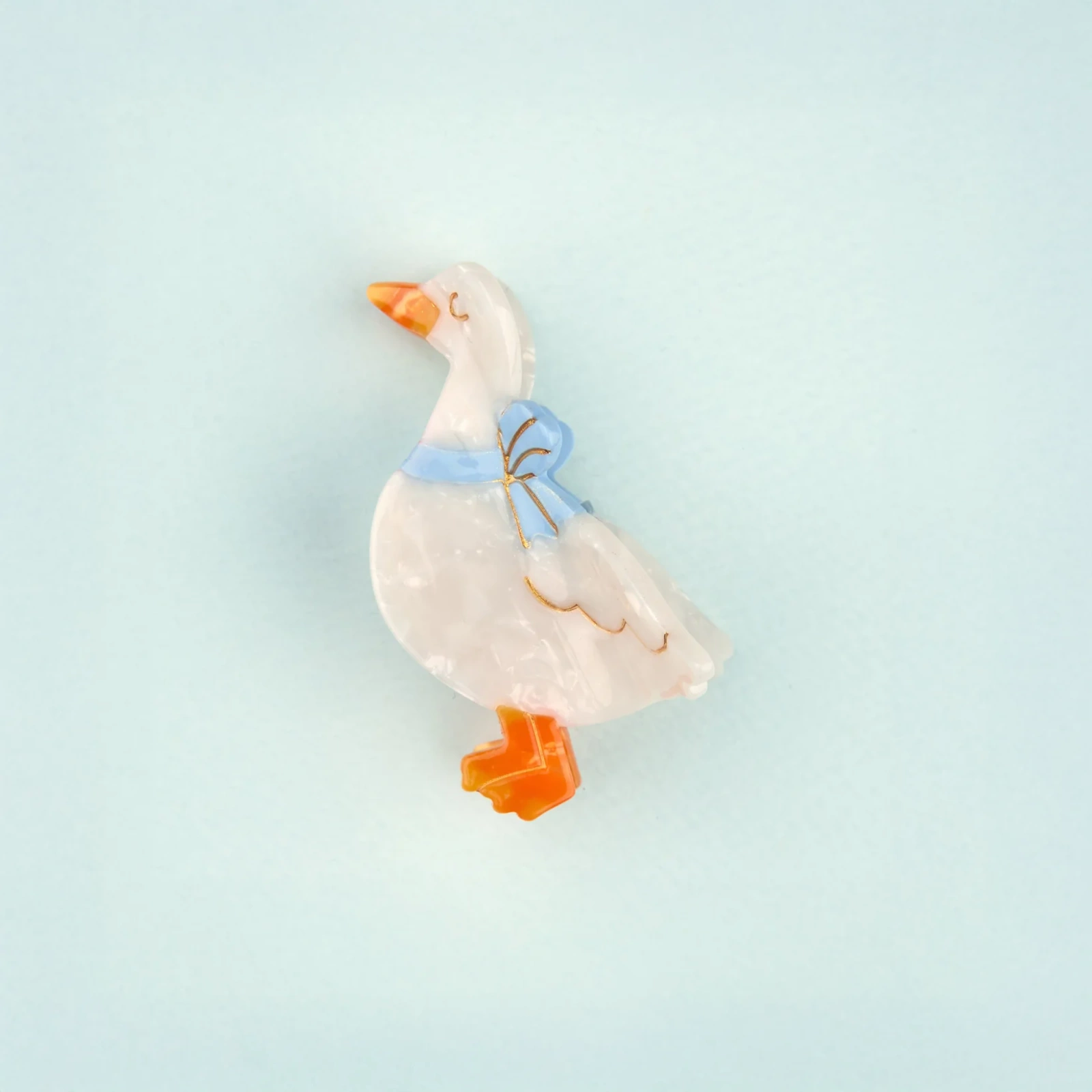 Urocza gąska wypatrująca przytulnego gniazdka. Z perłowymi piórami i błękitną wstążką, ta nostalgiczna ozdoba do włosów w kształcie ptaka to najbardziej oryginalny sposób na ozdobienie wszystkich Twoich koków i upięć.