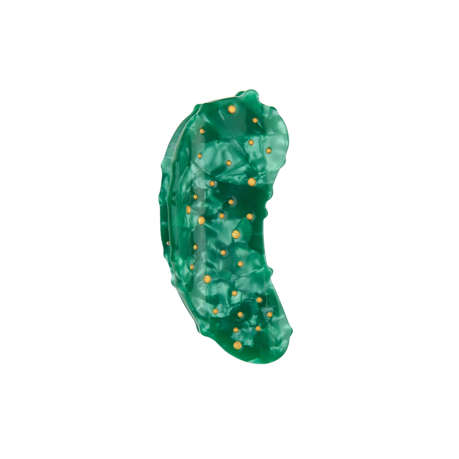 Absolutny must-have na pikniki, kanapki i serowe raclette: oczywiście ogórek! Uwielbiamy go tak bardzo, że nosimy go nawet we włosach jako mini spinkę. Mały, szmaragdowozielony klejnot posypany złotymi kropkami, który wygląda tak apetycznie, że aż chce się go zjeść.