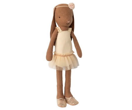 Znany króliczek Maileg przebrał się za baletnicę. Ma na sobie kremowy kostium, tiulową spódniczkę i baletki.