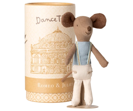 Prawdziwa baletnica. Myszka jest zapakowana w piękną tubę z podstawką, którą możesz wykorzystać, jeśli chcesz wyeksponować baletnicę w domu.