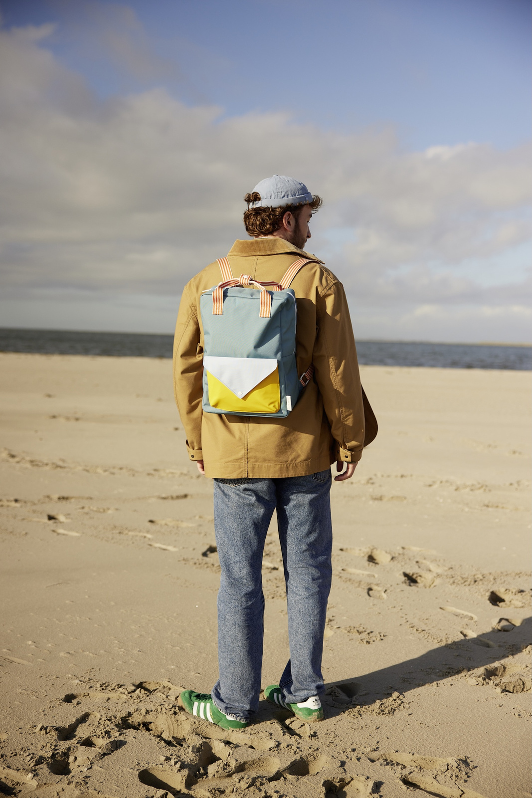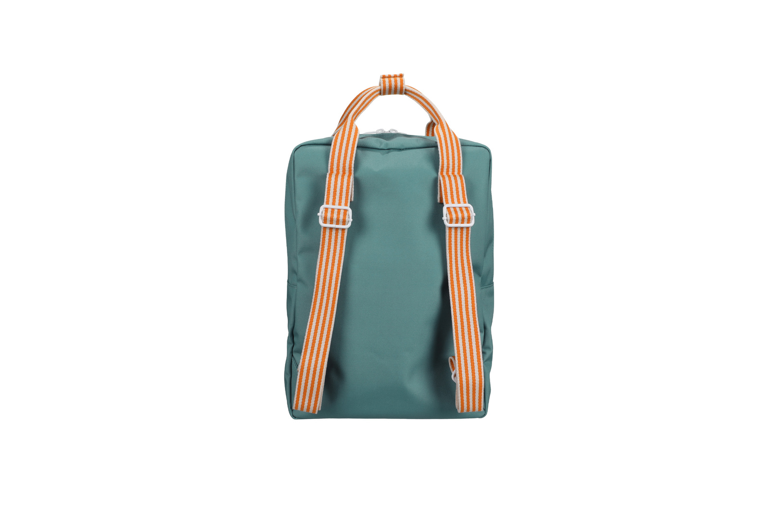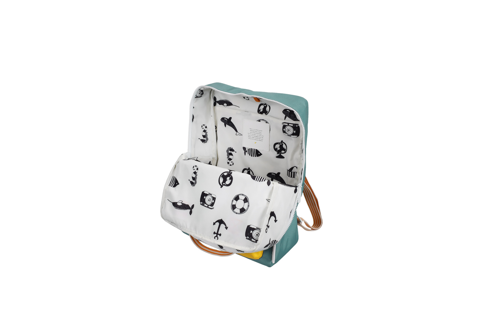 Połączenie kolorów sprawia, że ta torba wyróżnia się na tle innych! Posiada dodatkową kieszeń z przodu, wodoodporną podszewkę z ręcznie rysowanym wzorem oraz regulowane paski na ramię. Wewnątrz znajduje się gumka, która służy jako uchwyt na butelkę, oraz kieszeń z tyłu zapinana na rzep. Jest też metka na imię i nazwisko.