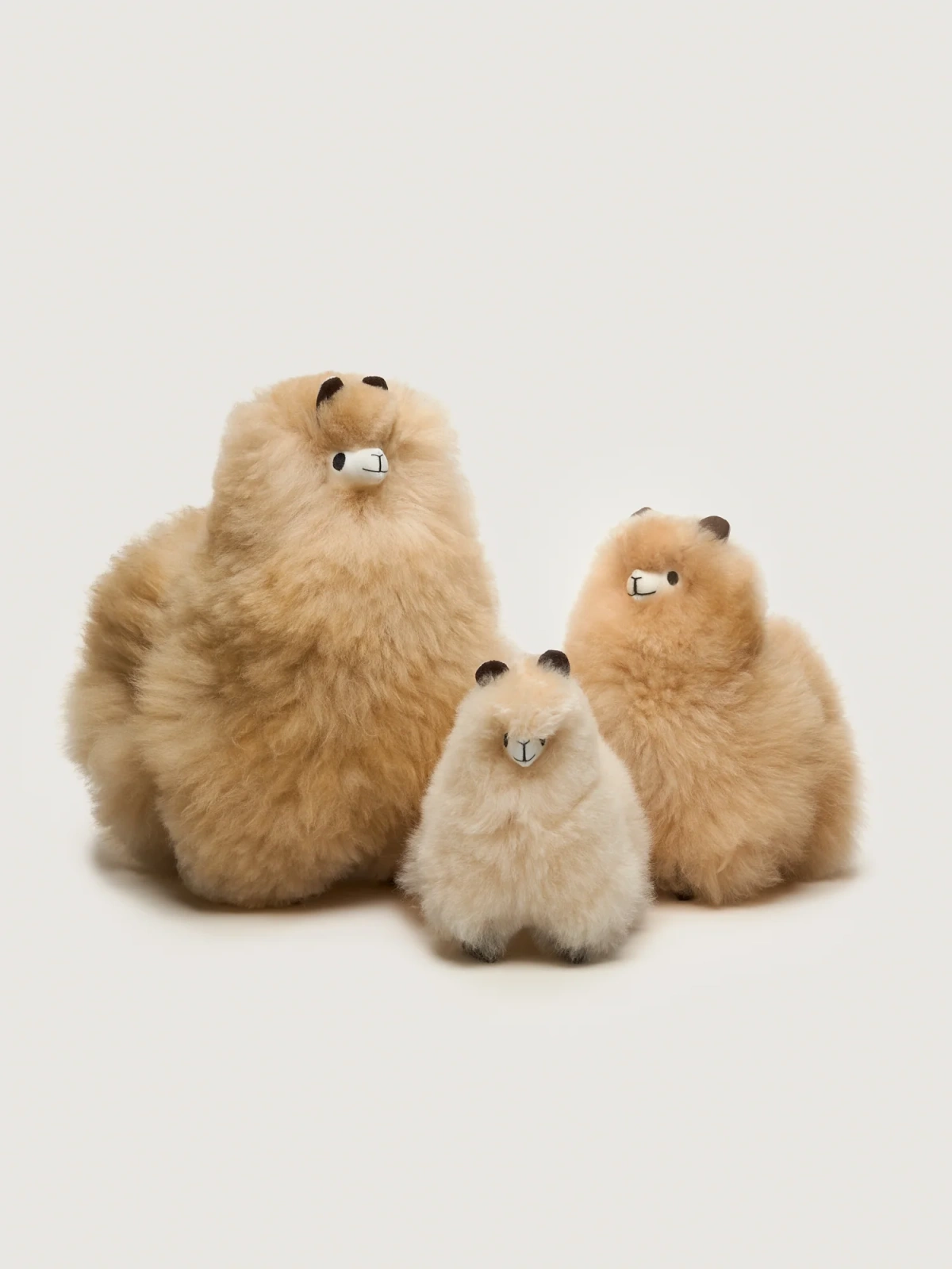 Nasze przytulanki powstają w Peru, we współpracy z lokalnymi rzemieślnikami, którzy przekazują sobie tę sztukę z pokolenia na pokolenie. Futro pochodzi wyłącznie od alpak, które żyją w naturalnych warunkach i są strzyżone w sposób bezpieczny i bezstresowy. Każdy etap produkcji – od pozyskania materiału po ręczne wykonanie – odbywa się z szacunkiem dla zwierząt, ludzi i środowiska.