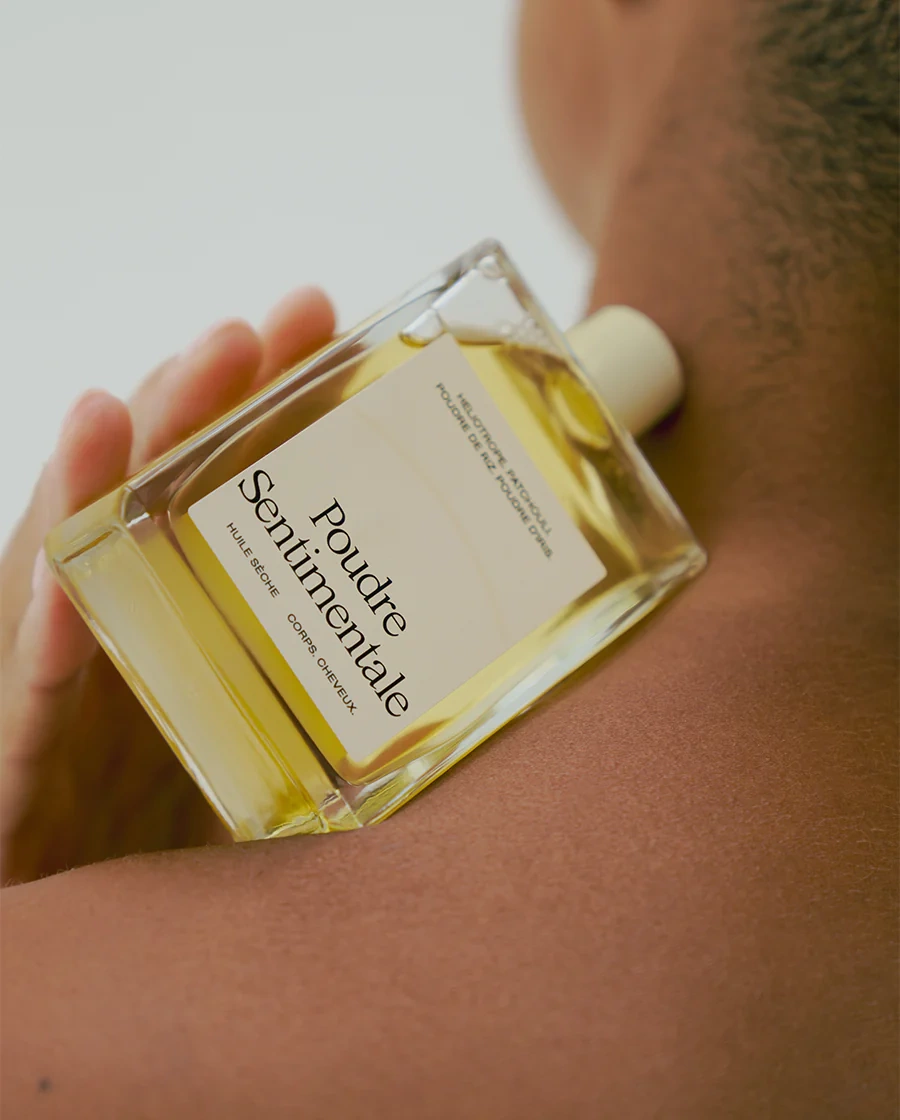 Odkryj suchy olejek, który odżywia i upiększa skórę i włosy, jednocześnie otulając je delikatną, pudrową aurą z urzekającymi nutami naszego zapachu Poudre Sentimentale.