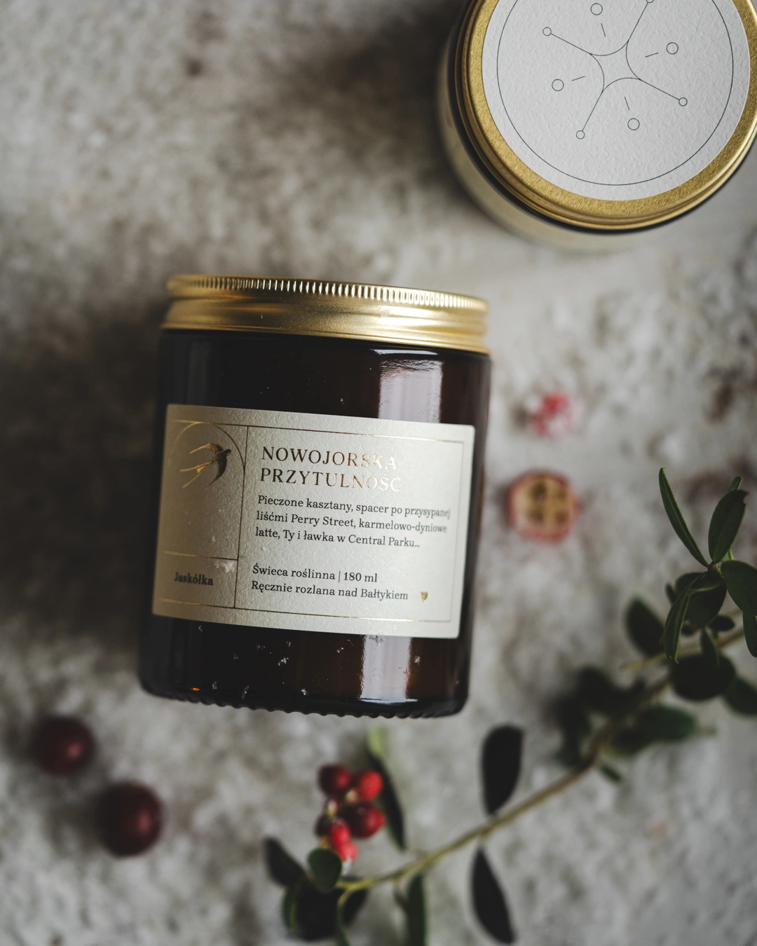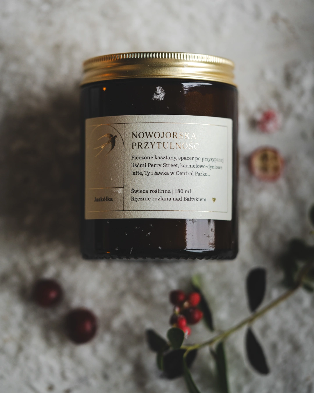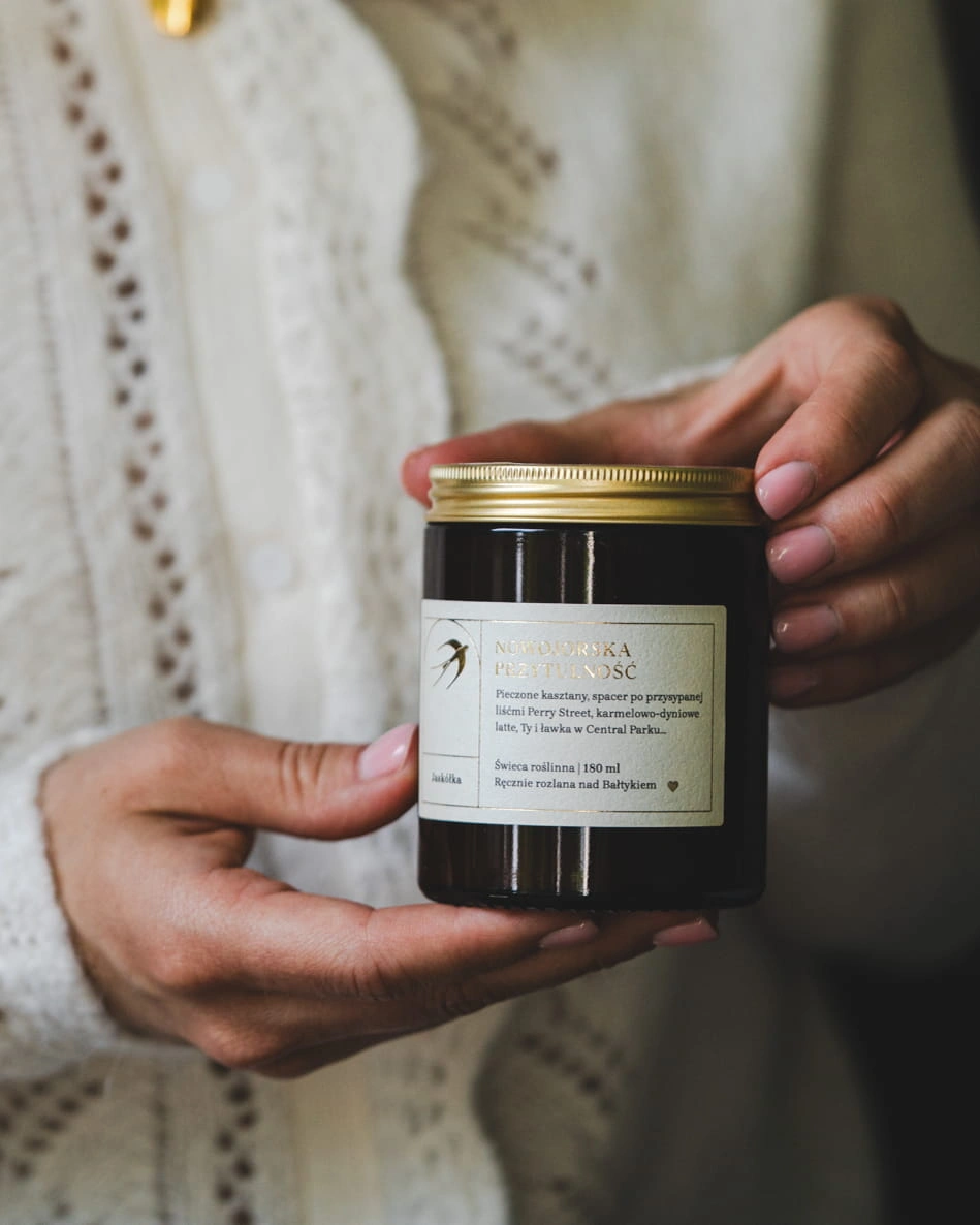 Świeca sojowa Nowojorska Przytulność to jesienny dzień w Nowym Jorku. Spacerujesz złoto-czerwonymi alejami Central Parku. Ławka, Ty i pieczone kasztany w papierowej torebce, nieopodal malowniczego Bow Bridge. Z dala od zgiełku Manhattanu, otulona kaszmirowym szalem, czytasz książkę.