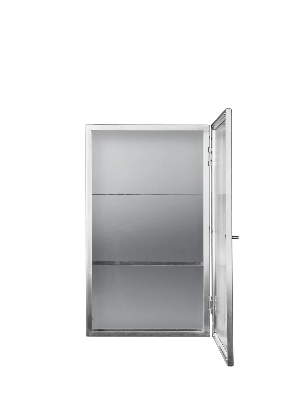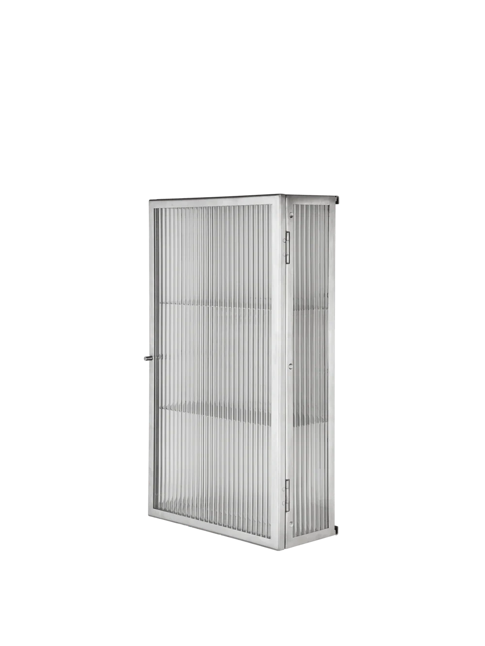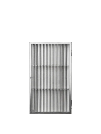 Szafka ścienna Haze dostępna jest w wykończeniu ze szczotkowanej stali nierdzewnej, co nadaje jej czystej, industrialnej sylwetce świeży charakter. Powierzchnia podkreśla naturalną fakturę materiału, jednocześnie delikatnie i subtelnie odbijając światło. Dzięki smukłej konstrukcji i drzwiom z ryflowanego szkła, szafka oferuje eleganckie miejsce do przechowywania w łazience, kuchni lub korytarzu, pozwalając na schludne ukrycie przedmiotów codziennego użytku.
