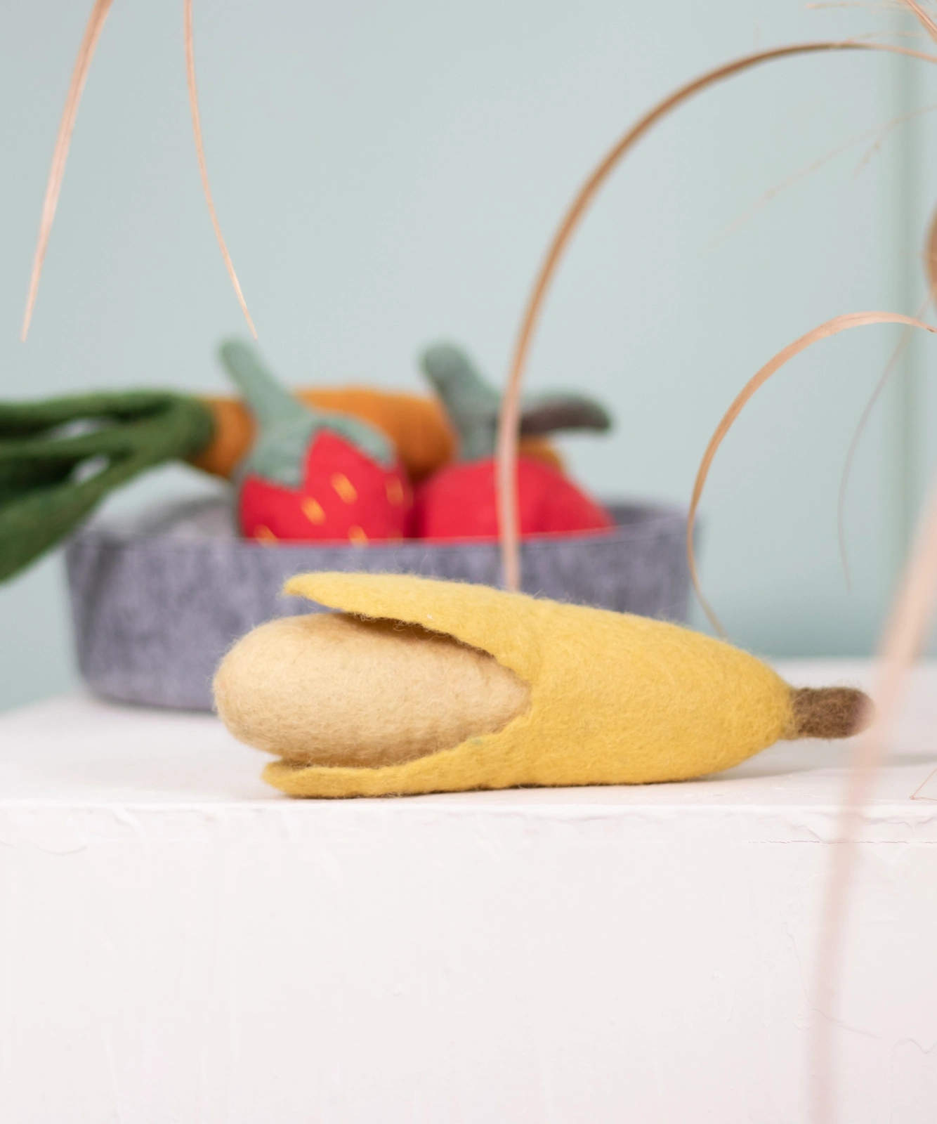 Nasza naturalna zabawka dla psa Hannah Banana to fantastyczne rozwiązanie do chowania, aportowania i noszenia z dumą. Gęsto filcowana owcza wełna jest całkowicie naturalna, wolna od szkodliwych substancji i pachnie niezwykle kusząco dla psów. To co... masz ochotę na zabawę w chowanego?